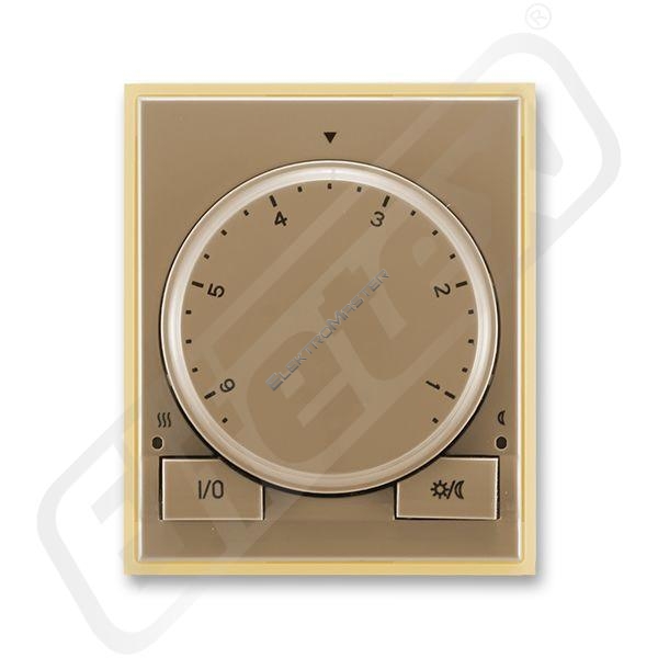 Element# | Termostaty | Termostat univerzální otočný - ovládací část | kávová / ledová opálová || Ovládací jednotka (nutno použít spínací přístroj). Volitelná funkce prostorového, nebo podlahového termostatu. Lineární nastavení teploty. Indikace stavu výstupu dvojbarevnou LED. Tlačítka pro zapnutí/vypnutí termostatu a pro ruční snížení teploty (s indikací LED). Pracovní teplota: 0 °C až +55 °C. Prostorový termostat s tepelnou zpětnou vazbou: Nastavitelné teploty: cca +13 °C až +27 °C (orientační stupnice). Nastavitelné ruční snížení teploty: cca 2 K až 8 K. Hystereze: cca #0,25 K. Podlahový termostat: Nastavitelné teploty: cca +15 °C až +48 °C (orientační stupnice). Nastavitelné ruční snížení teploty: cca 4 K až 16 K. Hystereze: cca #0,5 K. Ke svorkám 1, 2 spínacího přístroje je nutné připojit vnější snímač teploty 3292U-A90100 (není součástí dodávky) a přemístit vnitřní propojku podle návodu.