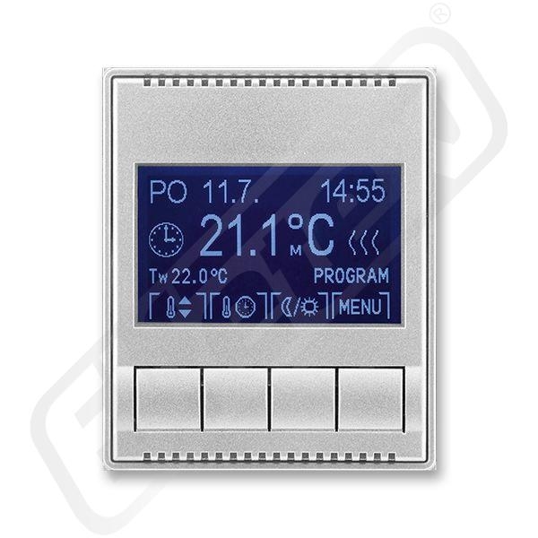 Time#, Time# Arbo | Termostaty | Termostat univerzální programovatelný - ovládací část | titanová || Ovládací jednotka (nutno použít spínací přístroj). Volitelná funkce prostorového, podlahového nebo kombinovaného termostatu. Nastavitelné teploty: 0 °C až +50 °C.Provozní režimy: manuální, automatický (1 základní nebo 3 rozšířené časové programy), dovolená. Základní program: volba ze 2 přednastavených teplot - komfortní a útlumové. Rozšířený program: navíc možnost libovolně nastavitelné teploty. Časový program: max. 70 časových značek s rozlišením 5 minut, pro jednotlivé dny v týdnu nebo Po-Pá, So-Ne, Po-Ne. Další funkce: softwarové vypnutí, volba topení nebo chlazení, jas a kontrast displeje, zámek tlačítek, volba teplotního snímače, minimální a maximální limitní teplota, vnější ovládání kontaktem, adaptivní regulace, funkce předvídání, omezení nastavitelných teplot, počítadlo provozních hodin, protimrazová ochrana, ochrana ventilů, inverze funkce výstupu, automatický přechod zimní/letní čas, volba jazyka (CZ, EN, RUS). Rezerva chodu: cca90 dní (dobíjecí Li článek). Pracovní teplota: 0 °C až +50 °C. Snímač teploty pro podlahové vytápění: 3292U-A90100 (není v dodávce)