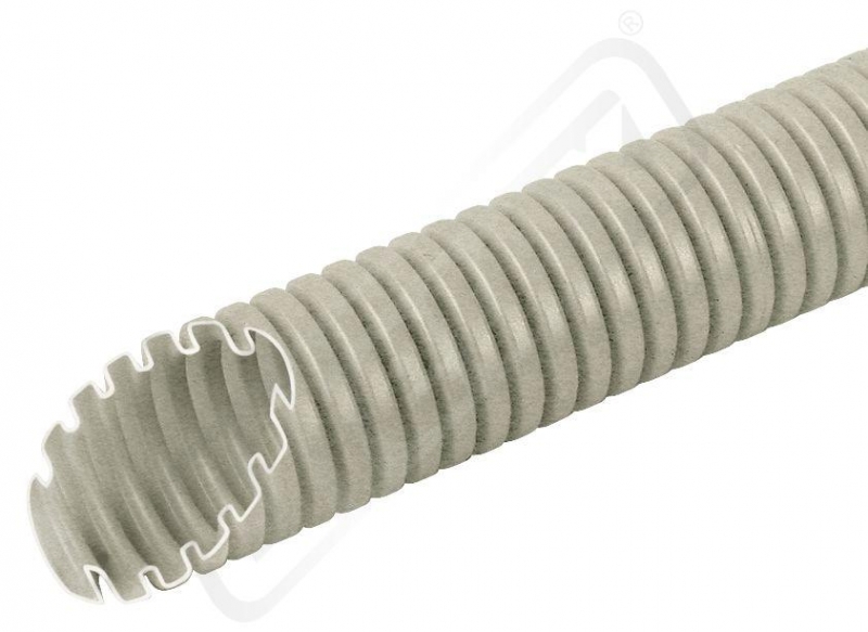 Lehce odolná plastová zvlnená trubka pro instalaci pod omítku a do duté prícky, nesírící plamen, odolná korozi, DIN EN 61386-22, zatrídení: 22212