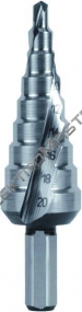 Kvalitní ocel HSS (DMO5) vybroušená Zašpičatění: křížové broušení dle DIN 1412C Vrcholový úhel: 118°, Souhlasný úhel: 90° Povrch: leštěný 3-bodová plochá stopka pro perfektní upevnění nástrojů ve sklíčidle