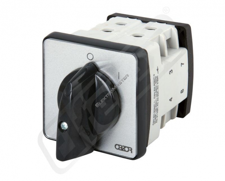 Přepínač 32A, černá střední čelní deska, černá šipka, 0-1 45°