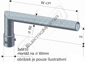"Výložník k osvětlovacím stožárům, SK 2- 500/180 žár.zinek TYPY STOŽÁRŮ Výložník typu SK se používá pro stožáry typu S, K, KL, KLA, KLB, KA, KLL, kuželové a osmihranné o60. POVRCHOVÁ ÚPRAVA: -žárové zinkování dle normy din EN ISO 1461 -žárové zinkování s vrchním nátěrem dle tabulek RAL PROVEDENÍ: -jedná se o jednoduchý lomený výložník, který se nasazuje na vrchní stupeň dříku a fixuje pomoci 3 šroubů M10 -1-4 ramenné, délka vyložení v závislosti na výšce stožáru CERTIFIKACE A SHODA: Výrobek svým charakterem odpovídá souboru norem ČSN EN 40 a splňuje požadavky dle CSN EN ISO 3834. Jakost výrobku je řízena dle EN ISO 9001:2001. "