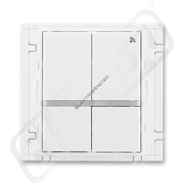 Time#, Time# Arbo | Bezdrátové radiofrekvenční (RF) ovládání | Vysílač RF signálu, nástěnný, čtyřtlačítkový | bílá / ledová bílá ||Při stisknutí jednotlivých částí hmatníku se vyšle odlišný kód (lze tak nezávisle ovládat dva nebo až čtyři přijímače). Napájení: Li baterie 3 V, typ CR 2430 (je součástí dodávky). Počet ovládaných kanálů: 4. Provozní kmitočet vysílače: 868 MHz. Dosah: až 150 m (ve volném prostoru). Automatické omezení doby vysílání: 60 s. Pracovní teplota: #20 °C až +55 °C. Vysílání a příp. pokles napájecíhonapětí jsou indikovány LE diodou.