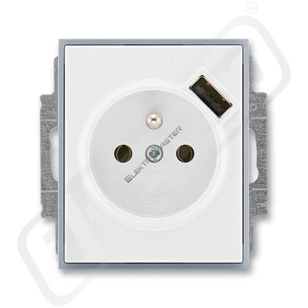 Element# | Zásuvky | Zásuvka s USB nabíjením, jednonásobná bezšroubová | bílá / ledová šedá || Pro současné používání zásuvky a nabíjení mobilního koncového zařízení se standardním nabíjecím rozhraním dle ČSN EN 62684 pomocí USB kabelu typu A. Elektronická ochrana před zkratem a přetížením. Výstupní napětí: 5 V DC # 5 % (SELV). Jmenovitý proud USB zásuvky: 700 mA. Vestavná hloubka: 35 mm. Nelze používat k datovému přenosu. 16 A, 250 V AC