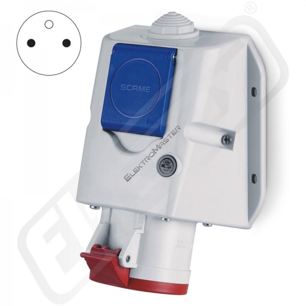 Zásuvka nástěnná kombinovaná OPTIMA - 3P+N+E, 16A, 6h/346-380 V, 50/60 Hz, IP44 + domovní 230V