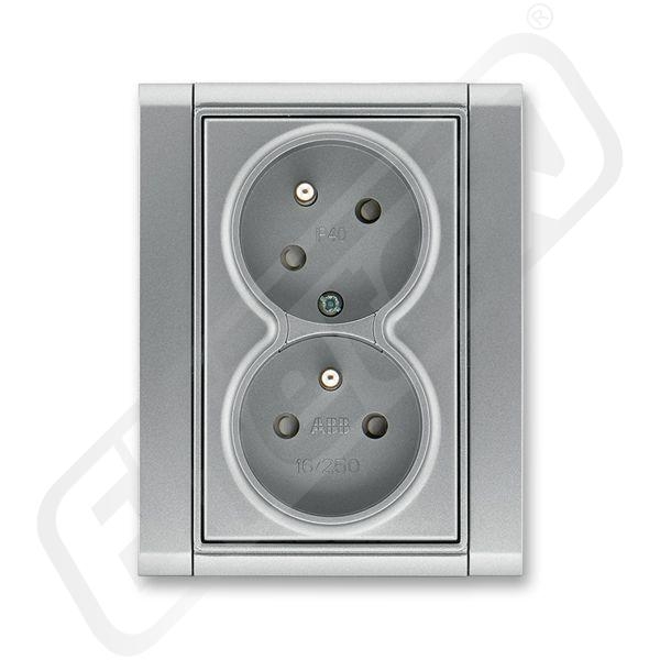 Time#, Time# Arbo | Zásuvky | Zásuvka dvojnásobná bezšroubová, s clonkami, s natočenou dutinou | ocelová || IP 40. 16 A, 250 V AC