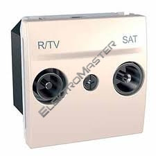 Unica, zásuvka R-TV/SAT, koncová, marfil. označení řady: Unica (standard) - typ produktu nebo součásti: zásuvka R-TV/SAT - úprava zařízení: mechanismus - typ TV zásuvky: samostatná zásuvka - konektor TV: samec IEC 9.52 mm - SAT konektor: samice IEC 9,52 mm - počet modulů: 2 moduly - upevnění: zacvaknutím. Výhody: .. Aplikace: Obytné a kancelářské budovy Zapuštěné nebo povrchově montované instalace..