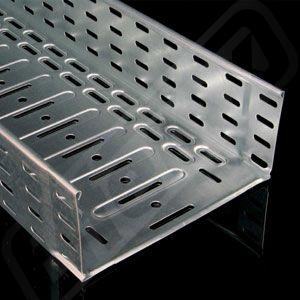 Kabelový žlab s integrovanou spojkou KZI 110x400 z plechu tloušťky 1,25 mm v povrchové úpravě sendzimir, děrovaný, opatřený embosy pro zvýšení pevnosti a tuhosti.