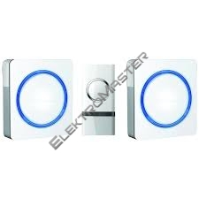 "- sada 2x přijímač, 1x tlačítko - 48 volitelných melodií, z toho 16 polyfonních - LED indikátor zvonění na zvonku i tlačítku - tlačítko s krytem na jmenovku - vodotěsná ochrana tlačítka IP44 - nastavení hlasitosti zvonku - 3 stupně (50 - 90dB) - uchycení tlačítka pomocí samolepicí podložky - barva: bílá - dosah signálu na otevřeném prostranství: 120m - napájení: tlačítko: 1 x 12V (LR23A) baterie (součástí balení) zvonek: AC 230V - plug-in - pracovní teplota: -10°C až +40°C"